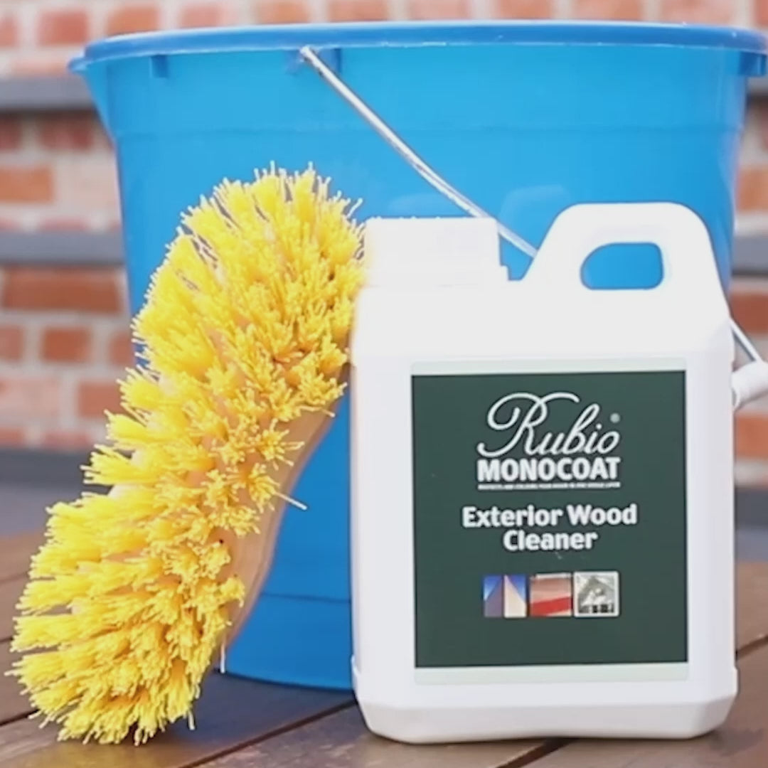 After cleaning with Rubio Monocoat Exterior Wood Cleaner, allow the surface to dry for approximately 30 minutes at 20°C with good ventilation before applying any finishing product.